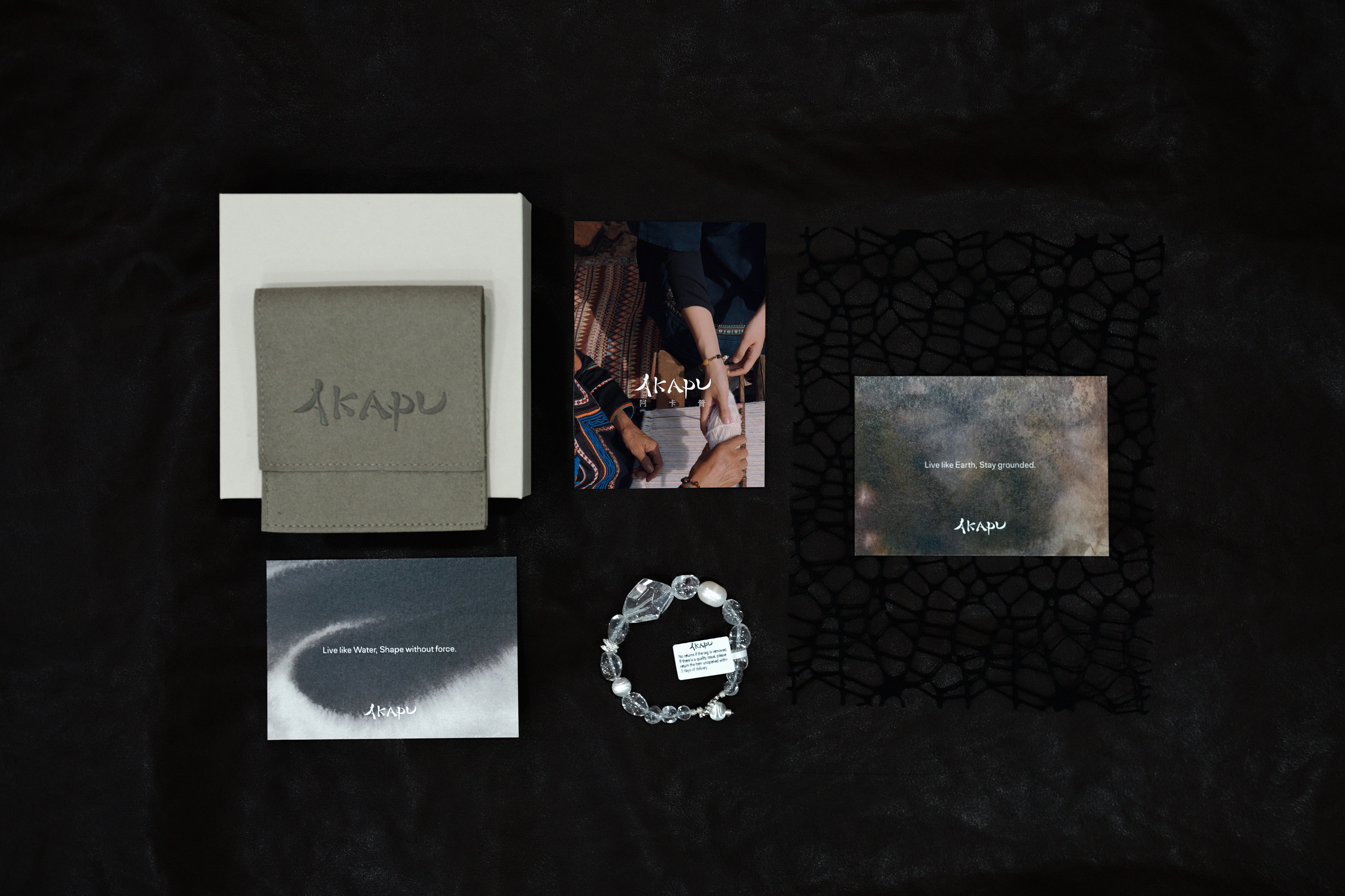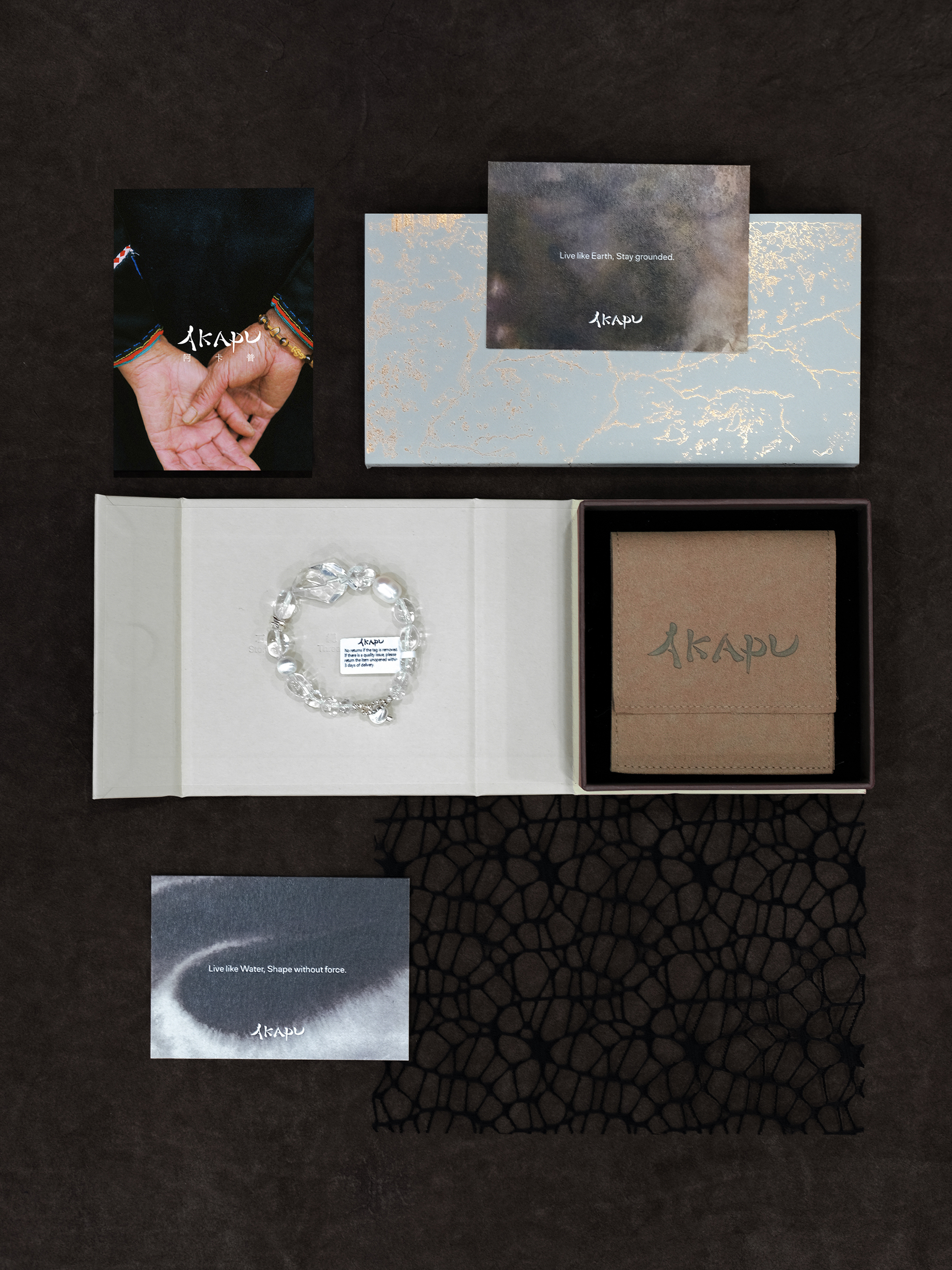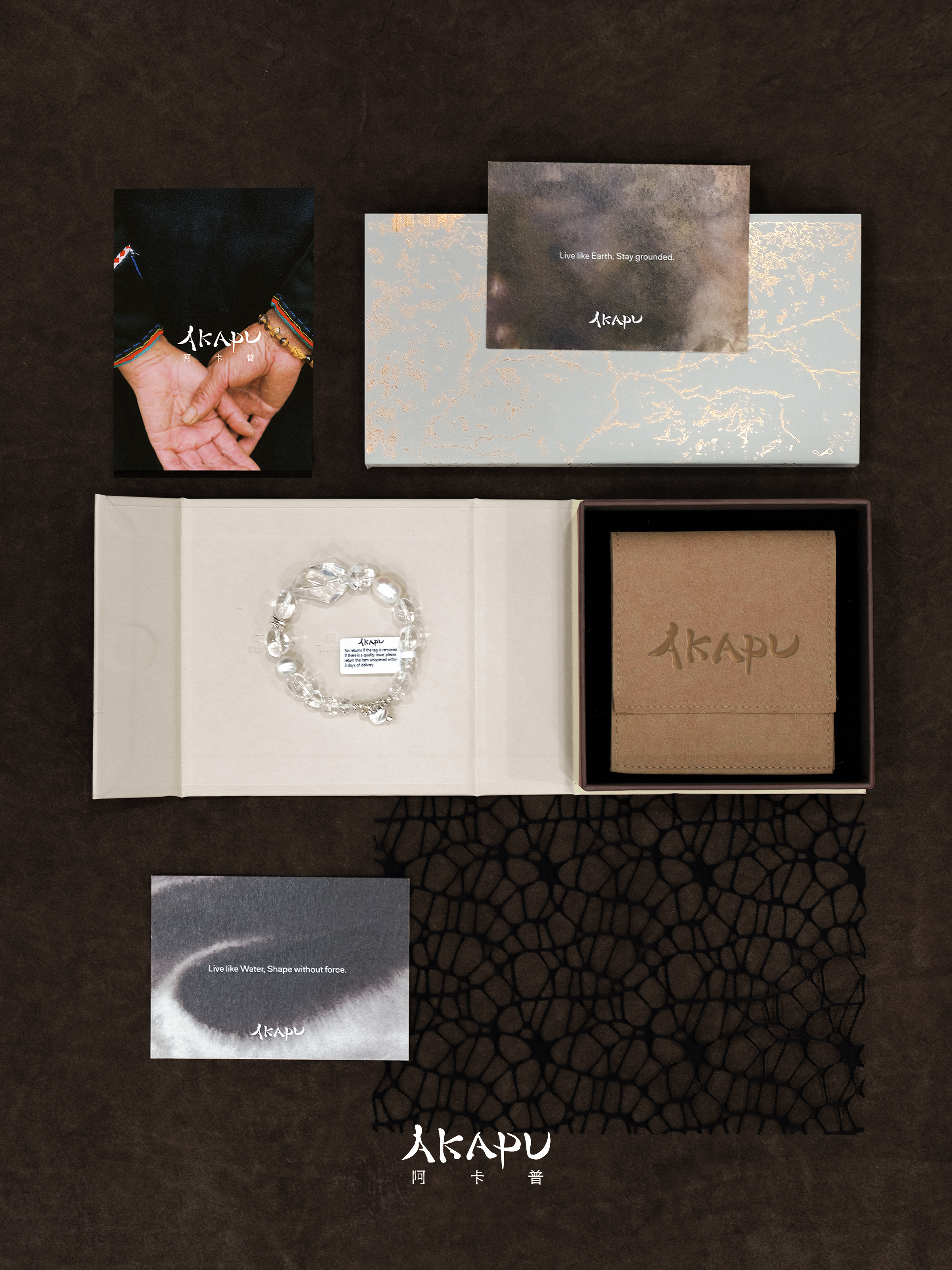 “Akapu”意为“我与花”,是人与自然共生的隐喻。通过探寻中国这片土地上的古老智慧,将大地的馈赠转化为可持续佩戴的手势,唤醒佩戴者与自然能量的原始连接。